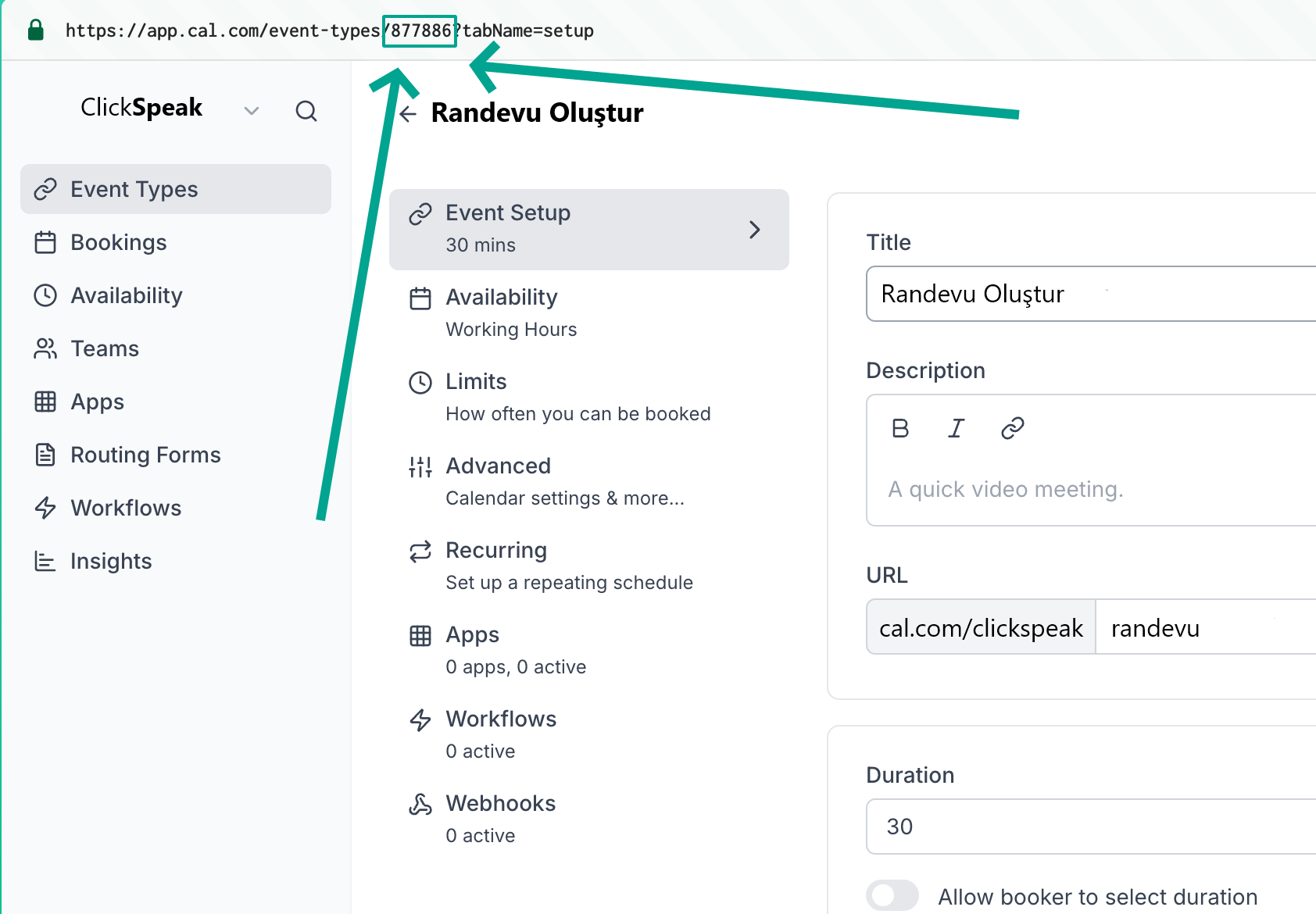 - An event type configured in Cal.com